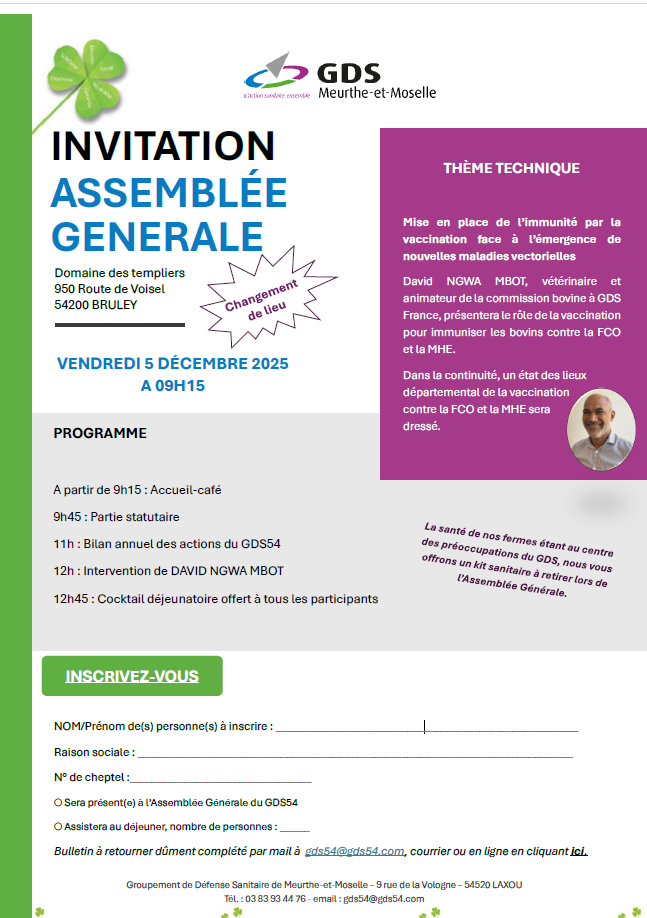 Vous êtes invités à notre Assemblée Générale 2025 qui se tiendra le vendredi 5 décembre à Bruley, au Domaine des