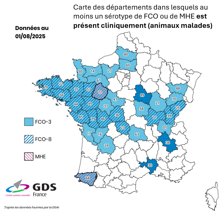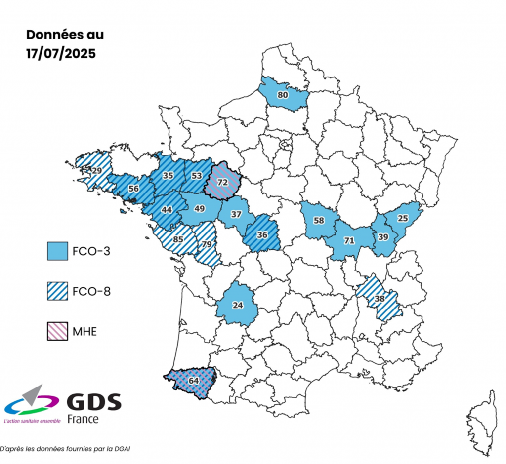 Point de situation DNC au 13/11/2025 Depuis le 29/06/25, 101 foyers ont été détectés, dans 68 élevages : Haute-Savoie : 44 foyers Savoie : 32 foyers Ain : 3 foyers Rhône : 1 foyer Jura : 7 foyers (dernier foyer détecté le 9/11) Pyrénées-Orientales : 14 foyers (dernier foyer détecté le 10/11) Bien que de nouveaux […]