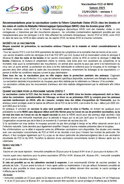 - Synthèse des vaccins disponibles contre la FCO (sérotypes 3 – 4 -8) 22/07/25